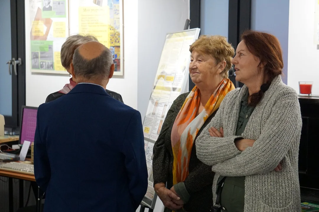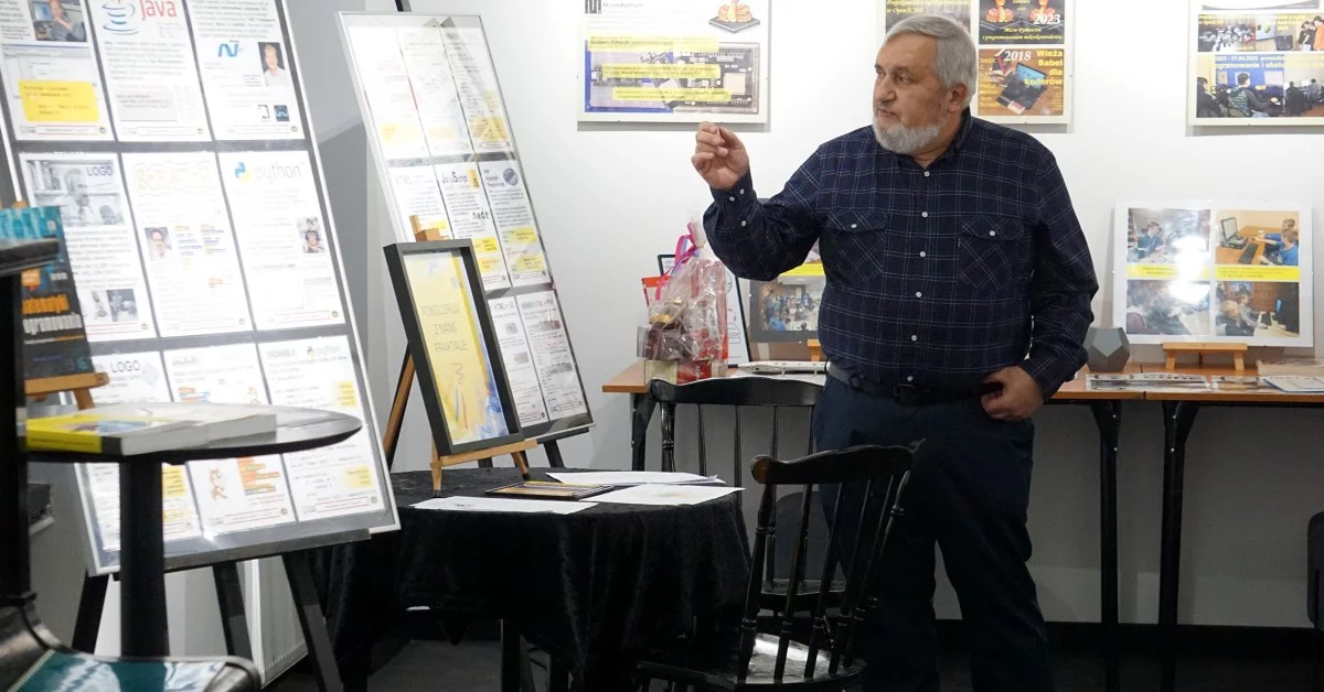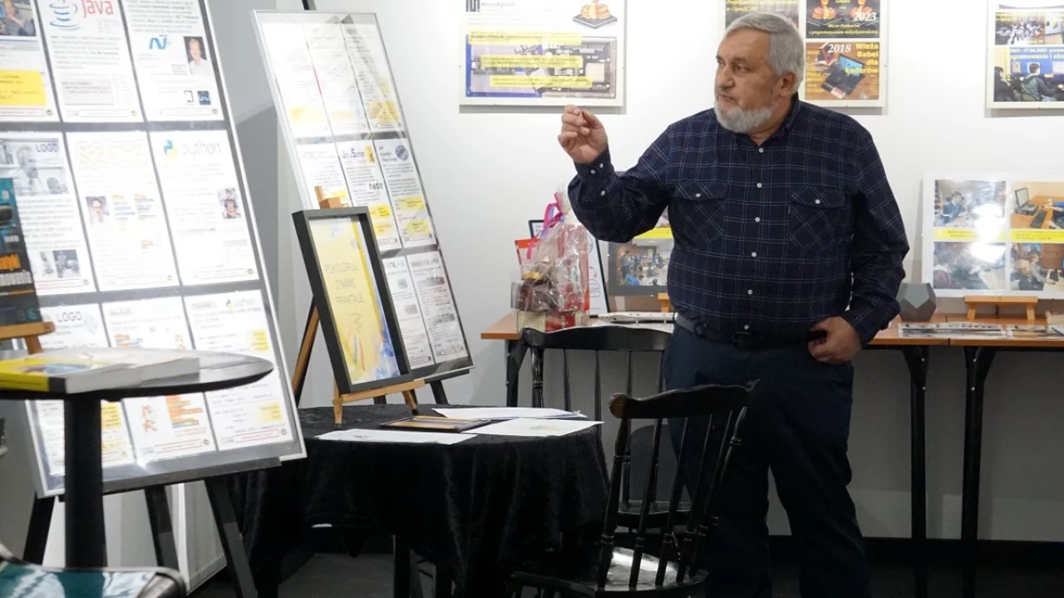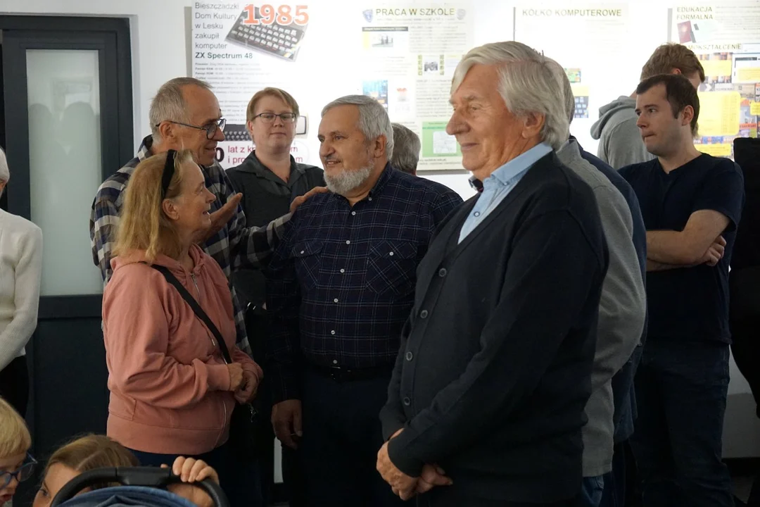 Wernisaż zgromadził wielu mieszkańców Leska i nie tylko. Wiesław Rychlicki oprowadzał uczestników po galerii, przedstawiając zarówno swoją ścieżkę zawodową, jak i praktyczne aspekty programowania, edukacji informatycznej i pracy z młodzieżą.
