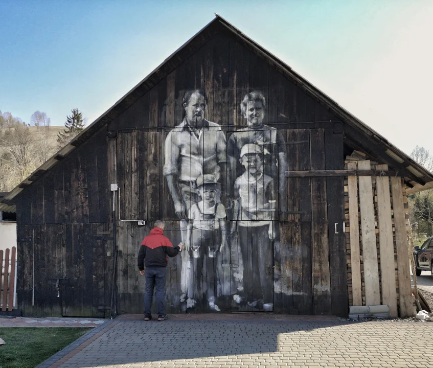 Podczas realizacji, malarz wykorzystał stare fotografie rodzinne pochodzące z miejscowości, w których powstawał mural. Najczęściej były to zdjęcia z prywatnych zbiorów właścicieli danej stodoły, którym bardzo zależało aby uwiecznić kogoś z ich rodziny. Obserwatorzy projektu murale na stodołach nazwali deskalami.