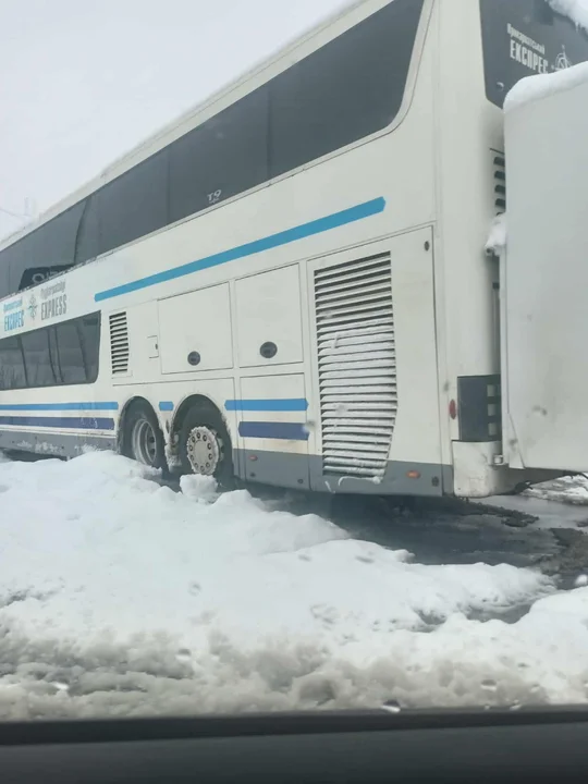 Jednym z najpoważniejszych zdarzeń była sobotnia kolizja drogowa na ulicy Przemysłowej w Lesku. Do kolizji doszło około godziny 03:30, zaledwie kilkadziesiąt metrów od budynku Komendy Powiatowej Policji. Ukraiński autokar, którym podróżowało ponad 30 osób, wpadł w poślizg na śliskiej nawierzchni. Pojazd zjechał z drogi i zawisł nad rowem, zatrzymując się w sposób, który – jak ocenili świadkowie – mógł zakończyć się znacznie poważniej.
