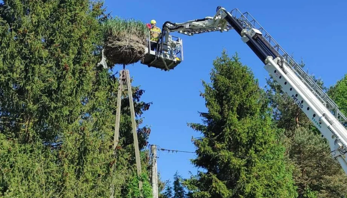 W związku z tym, podjęto decyzję o ponownym umieszczeniu bociana w gnieździe z uwzględnieniem monitorowania dalszej sytuacji. Z uwagi na wysokość o pomoc poproszono strażaków z Komendy Powiatowej Państwowej Straży Pożarnej w Ustrzykach Dolnych.