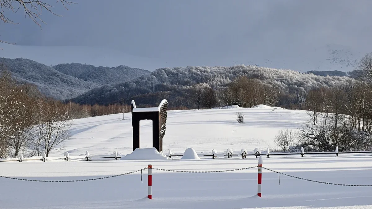 Pomnik przedstawia uskrzydlone wrota, stanowiące bramę do wolności, przez które widać najwyższy szczyt polskich Bieszczadów – Tarnicę. Rzeźbę z naturalnych materiałów wykonał Piotr Zbrożek, artysta z Przemyśla. Konstrukcja, która bardzo dobrze wkomponuje się w krajobraz, nawiązuje do sztuki budowlanej tych terenów. Idea pomnika ma wielowymiarową symbolikę. Stanowi ona wymiar historyczny i symboliczny. Rzeźba poświęcona jest ludziom walczącym o wolność w czasach PRL i stanowi symbol Bieszczadów jako krainy wolności.