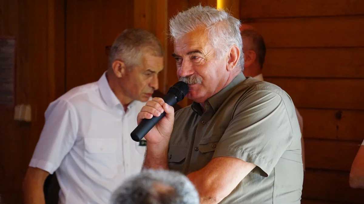 Kazimierz Nóżka, emerytowany leśniczy Leśnictwa Polanki w Nadleśnictwie Baligród, znany jest z zamiłowania do Bieszczadów, które przez lata były jego miejscem pracy i pasją. Na spotkaniu podczas Dnia Żubra w Lutowiskach, w towarzystwie swojego kolegi Marcina Sceliny, podzielił się z uczestnikami swoimi bogatymi doświadczeniami i niezliczonymi historiami związanymi z życiem wśród dzikiej natury. „W Bieszczady przyjeżdża się, by odpocząć, ale większość odwiedzających nie dostrzega tego, co najpiękniejsze” – mówił, zachęcając do porannego wstawania, by ujrzeć bieszczadzki wschód słońca. Opisywał to jako magiczny moment, który trwa bardzo krótko, a jednak zostaje w pamięci na zawsze. Kazimierz Nóżka wspominał również o żurawiach, które wiosną i jesienią przelatują nad Bieszczadami, zatrzymując się na chwilę, by odpocząć przed dalszą podróżą. To właśnie te drobne, ulotne chwile tworzą obraz Bieszczadów, który z każdym rokiem nabiera coraz większej wartości.
