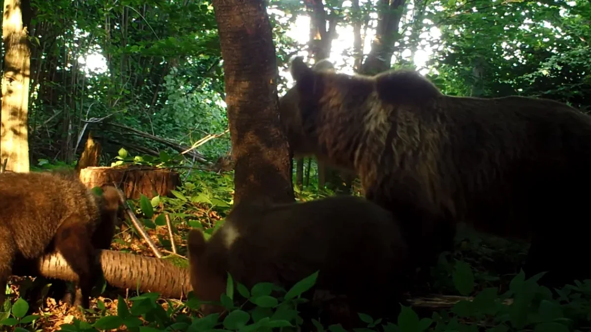 Zajadającą się słodkimi owocami niedźwiedzicę, która wybrała się na spacer z dwójką młodych zarejestrowała fotopułapka zastawiona przez leśników z Nadleśnictwa Baligród w Bieszczadach.
