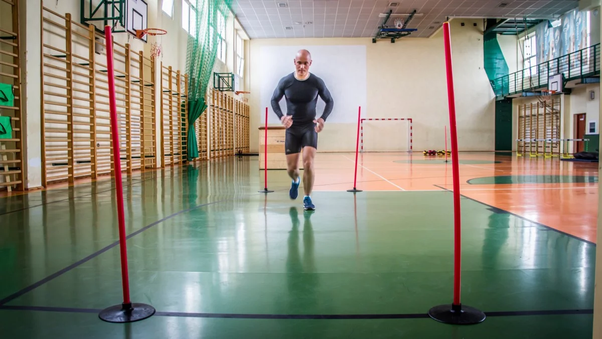 - Bieg na dystansie 10 metrów przez 90 sekund Kandydaci muszą w określonym czasie przebiec jak najwięcej odcinków między wyznaczonymi liniami.