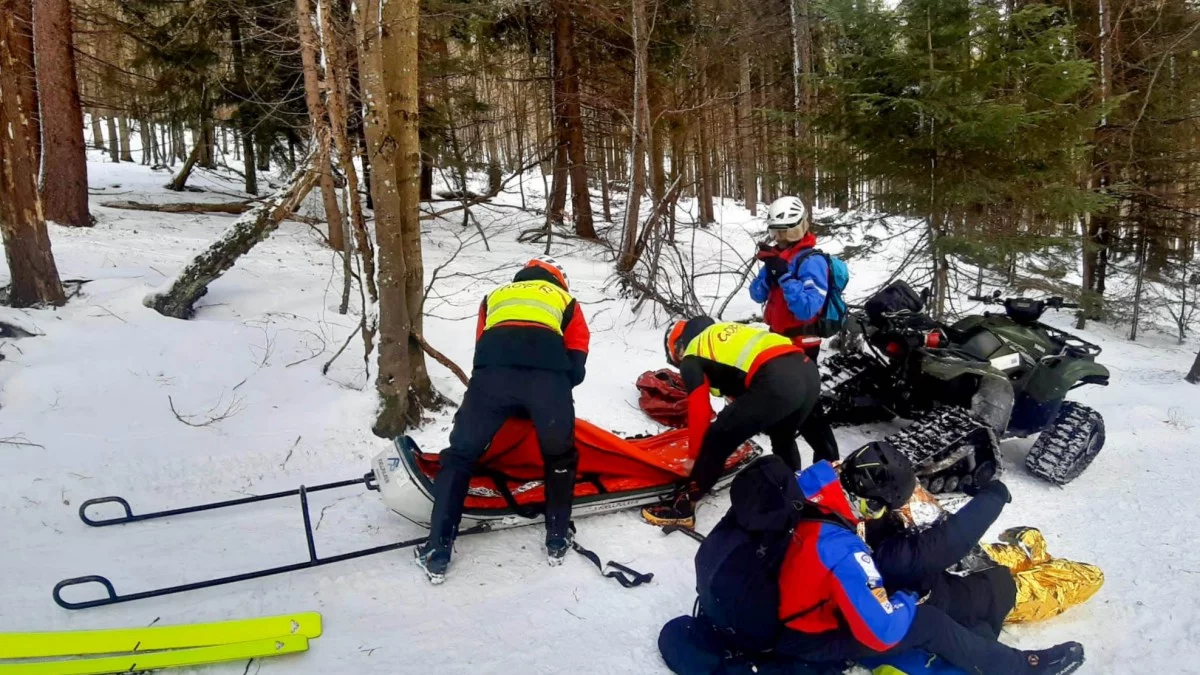 Inna interwencja dotyczyła mężczyzny podczas wycieczki skiturowej w rejonie Tarnica. Skiturowiec doznał urazu nogi i wymagał ewakuacji. Ratownicy zabezpieczyli go termicznie i przetransportowali do Wołosate, zapewniając bezpieczeństwo podczas transportu w trudnym terenie.