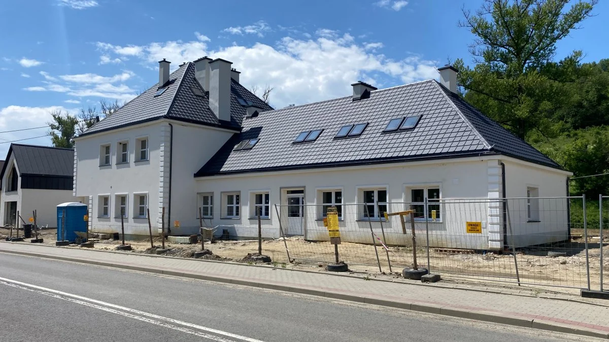 Prace przy renowacji budynku dworca w Komańczy