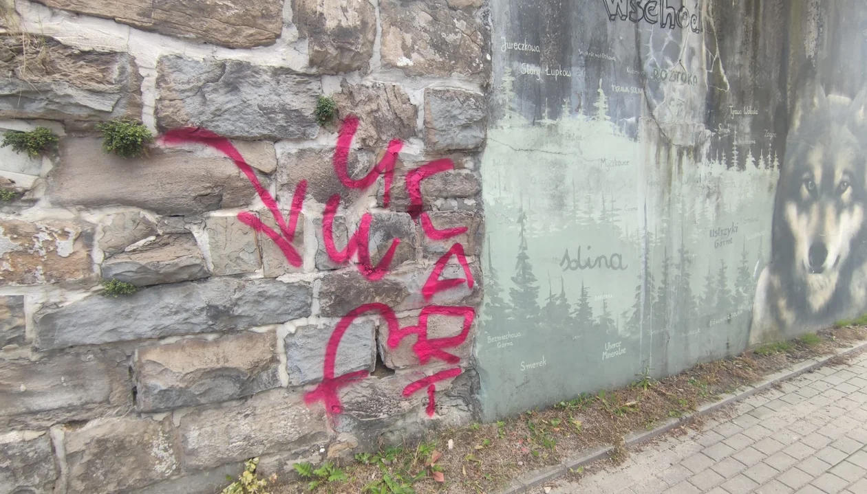 Do kolejnego zdarzenia doszło na wiadukcie w okolicy urzędu gminy, gdzie znajdują się murale sowy i wilka autorstwa Arkadiusza Andrejkowa. Miejsce stanowiące symboliczne przejście graniczne między Karpatami Wschodnimi i Karpatami Zachodnimi zostało zniszczone również poprzez napisy wykonane sprayem.
