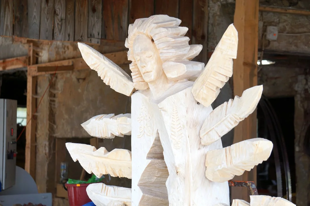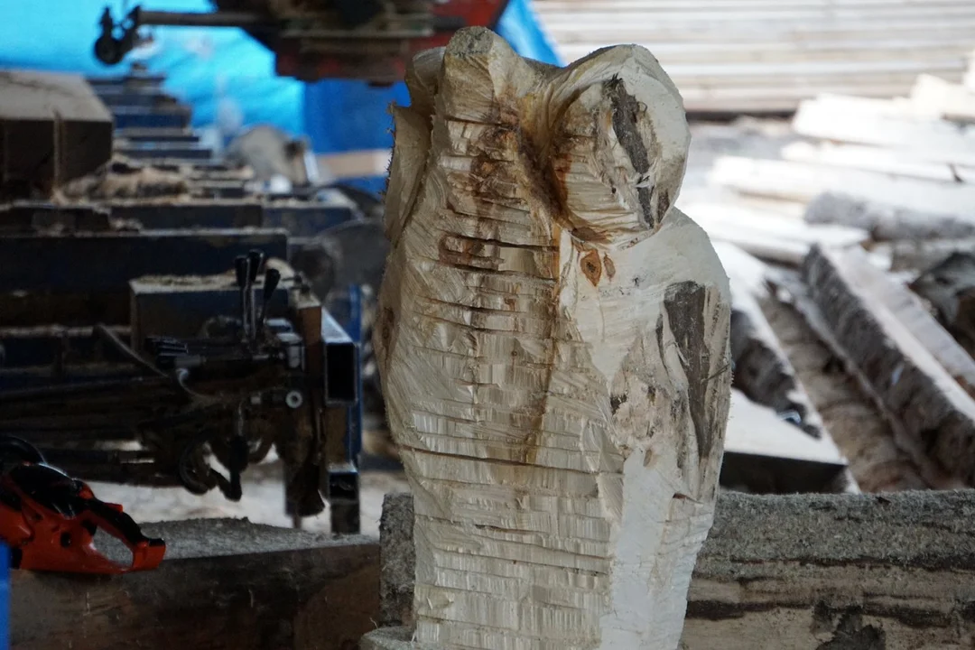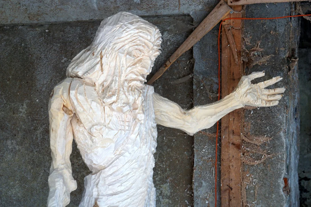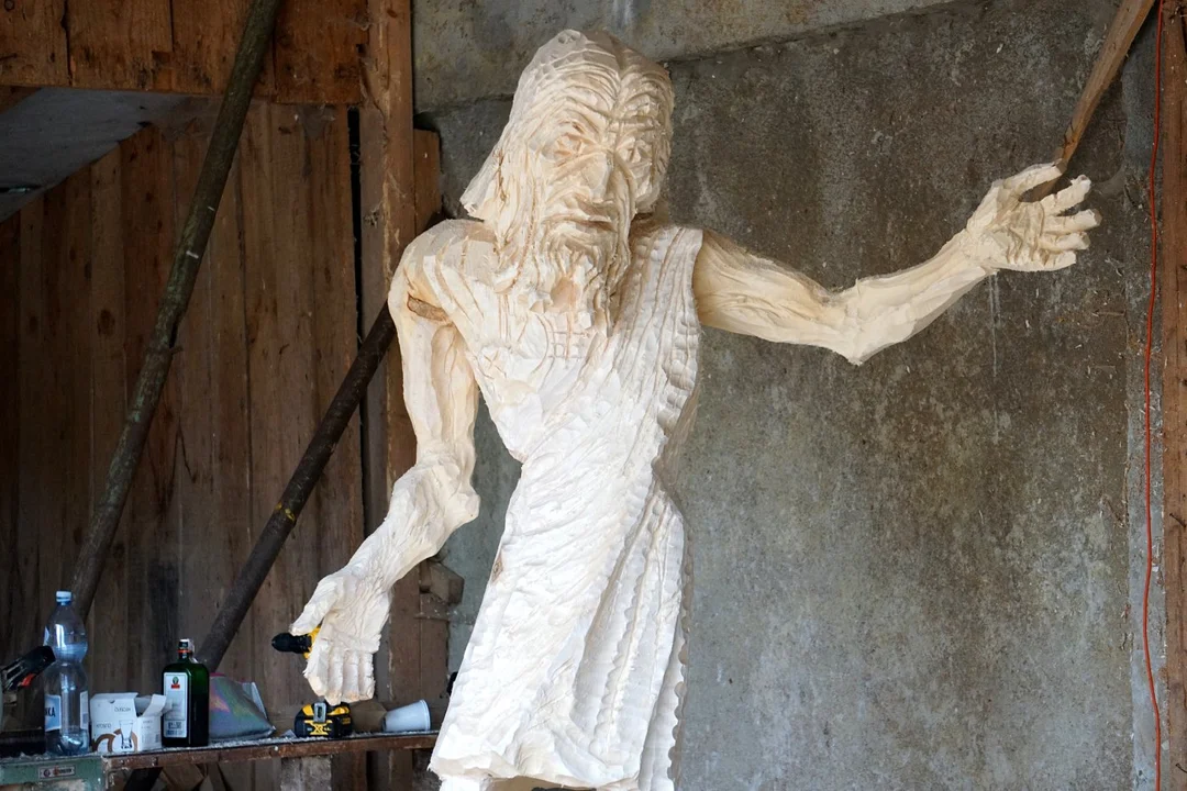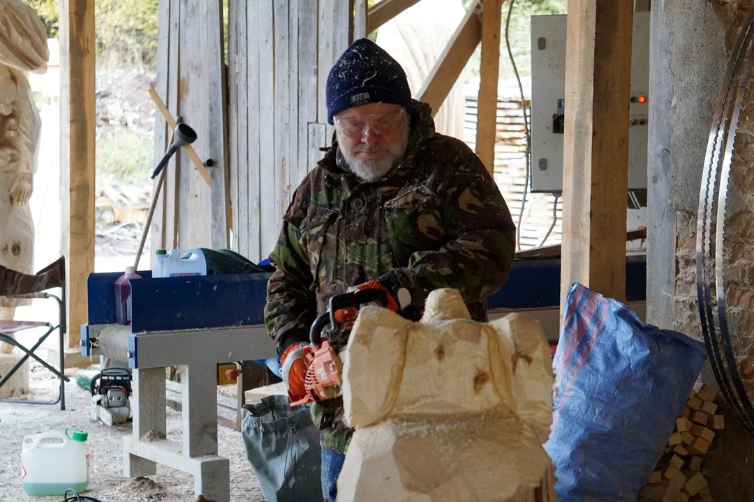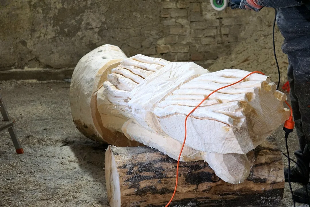 Rzeźba to forma trójwymiarowa, ma wysokość, szerokość i głębokość. Najpierw wycinamy kształt z przodu, potem z boku – i wtedy powstaje taki kanciasty, surowy twór. Dopiero później zaczyna się właściwe rzeźbienie, czyli modelowanie przestrzenne. Wtedy dopiero forma zaczyna żyć. Piły pozwalają na precyzyjną pracę, ale wymagają też ogromnego wyczucia. Drewnu trzeba pozwolić mówić – ono samo podpowiada, gdzie się zatrzymać, jak poprowadzić linię