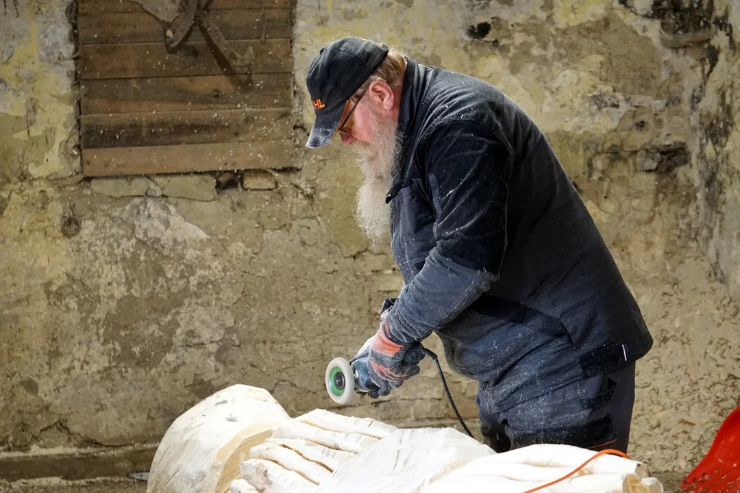 Dla uczestników pleneru ważny był nie tylko efekt końcowy, ale cały proces twórczy. Paweł Leszega opisuje etapy powstawania rzeźby.