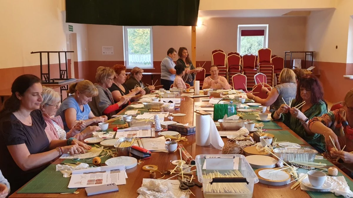 Słomiane anioły to niezwykłe ozdoby, które od wieków są częścią sztuki ludowej i mają głębokie znaczenie symboliczne, związane z dawnymi wierzeniami i rytuałami. Słoma, kiedyś wszechstronny materiał, była używana zarówno do tworzenia przedmiotów codziennego użytku, jak i dekoracji. Podczas zajęć, pod okiem Pani Justyny Warchoł Panie nauczyły się jak krok po kroku formować słomę, aby uzyskać subtelne, delikatne kształty aniołów a także poznały historię tych ozdób i ich znaczenie w kulturze ludowej