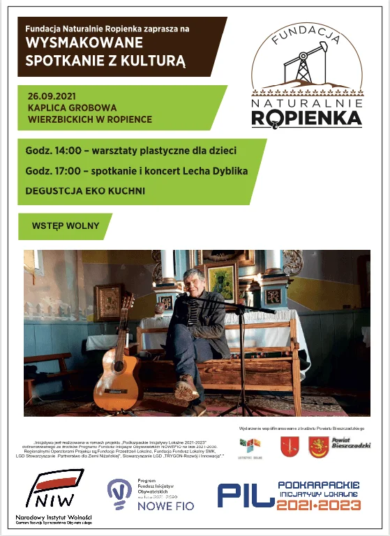 Fundacja Naturalnie Ropienka, zaprasza na jesienny koncert Lecha Dyblika w ramach projektu "Wysmakowane Spotkanie z Kulturą".