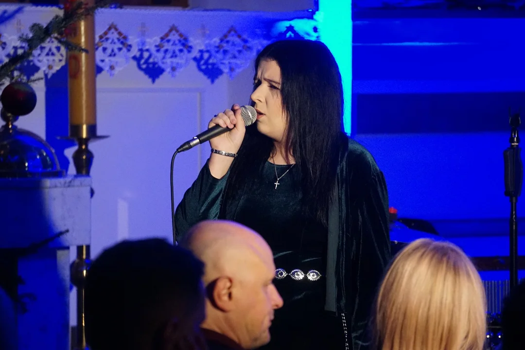 Po zakończeniu prezentacji laureatów festiwalu rozpoczął się koncert Kordiana i jego zespołu. Artysta wykonał szeroki wybór kolęd i pastorałek, prezentując repertuar dostosowany do miejsca i charakteru wydarzenia. W programie koncertu znalazły się również autorskie utwory, które naturalnie wpisały się w całość występu. Kordian nie ograniczał się jedynie do śpiewu – utrzymywał stały kontakt z publicznością, rozmawiał z uczestnikami wydarzenia i dzielił się krótkimi opowieściami oraz refleksjami.Podczas koncertu artysta zwrócił uwagę na akustykę kościoła w Wołkowyi, podkreślając, że jest to przestrzeń wyjątkowo sprzyjająca śpiewowi. Odniósł się również do intensywności swojej trasy koncertowej, przyznając, że liczne występy i tysiące kilometrów pokonywane w krótkim czasie wiążą się ze zmęczeniem, jednak przebywanie w świątyni i kontakt z publicznością dodają mu energii.
