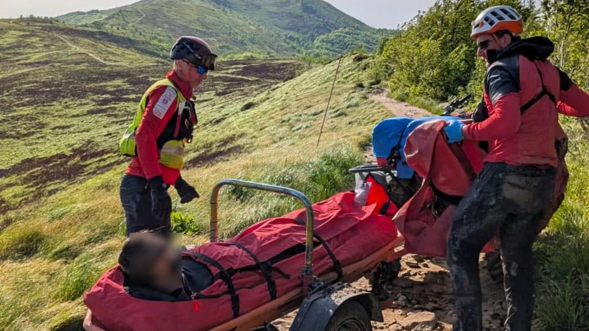 Dzień później, chwilę po godzinie 16:00 do centrali w Sanoku wpłynęło kolejne zgłoszenie: mężczyzna z urazem kończyny dolnej utknął na szlaku w okolicy Przełęczy Orłowicza. Poszkodowanego przetransportowano do Wetliny i przekazano karetce Bieszczadzkiego Pogotowia Ratunkowego.