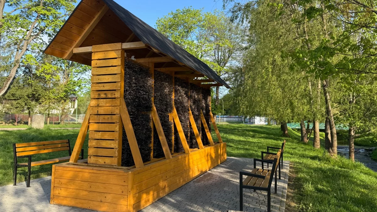 Tężnia w Ustrzykach Dolnych, choć niewielka pod względem rozmiarów, została zaprojektowana z dużą starannością. Jej drewniana konstrukcja o wymiarach 3,5 metra wysokości, 1,5 metra szerokości i 6 metrów długości wypełniona jest tarniną śliwy – naturalnym materiałem, po którym w obiegu zamkniętym spływa solanka. Centralne koryto rozprowadzające solankę umieszczono w górnej części budowli, co pozwala na równomierne nasączenie tarniny, gwarantując skuteczność inhalacji.