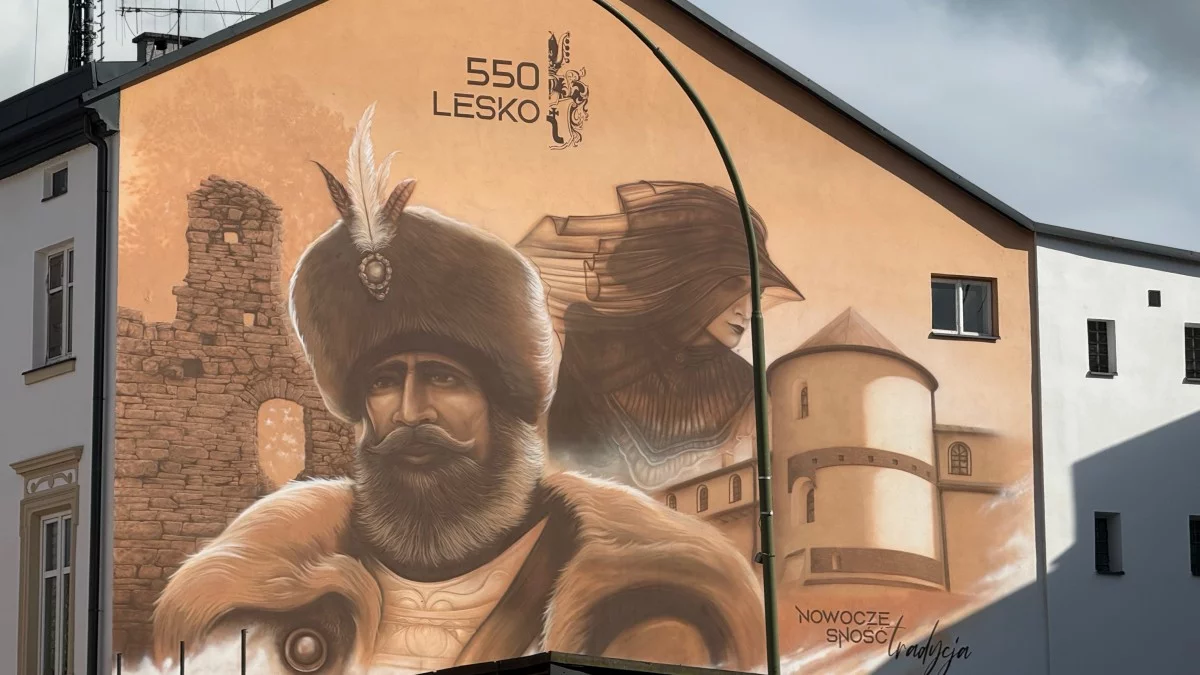 W centrum Leska, na ścianie jednej z zabytkowych kamienic, znajduje się mural, który nie tylko upamiętnia 550-lecie miasta, ale też łączy pokolenia artystów. Dzieło stworzone przez Marcina Kardasza przyciąga uwagę mieszkańców i turystów.
