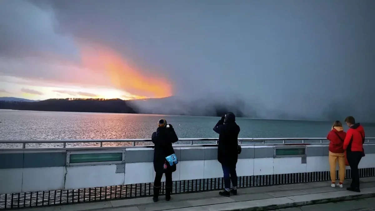 Było to podobne do mgły lub dymu, który w szybkim tempie przechodził na całość krajobrazu. Wszyscy, którzy byli w tym czasie na zaporze, przystanęli i nie mogli uwierzyć w to, co widzą.