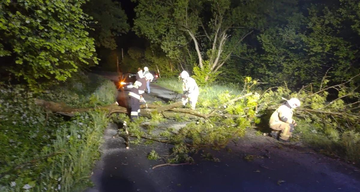 W miejscowości Roztoki Dolne na drogę spadło drzewo. Niestety był to tak niefortunny zbieg okoliczności, że akurat w tym czasie przejeżdżał tamtędy samochód osobowy. Pojazd marki seat nie zdążył wyhamować i został lekko uszkodzony. Samochodem podróżowały dwie osoby, ale na szczęście nikt nie ucierpiał w wyniku tego zdarzenia.
