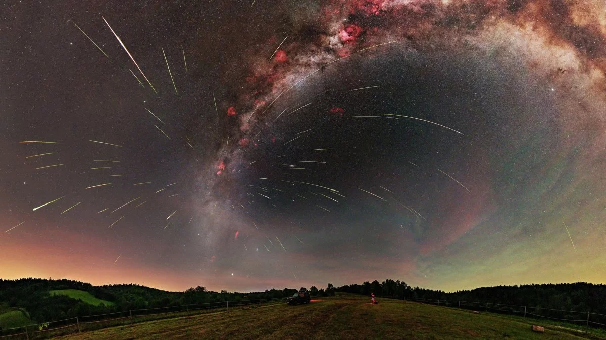 Nagrodzona fotografia przedstawia rój Perseidów, jednego z najpopularniejszych zjawisk astronomicznych, które co roku przyciąga uwagę obserwatorów nocnego nieba. Na ujęciu widocznych jest ponad sto meteorów, które zdają się wylatywać z jednego punktu, tak zwanego radiantu, położonego w gwiazdozbiorze Perseusza. Dodatkowym elementem jest efektowna wstęga Drogi Mlecznej, która sama w sobie mogłaby być tematem osobnego zdjęcia.