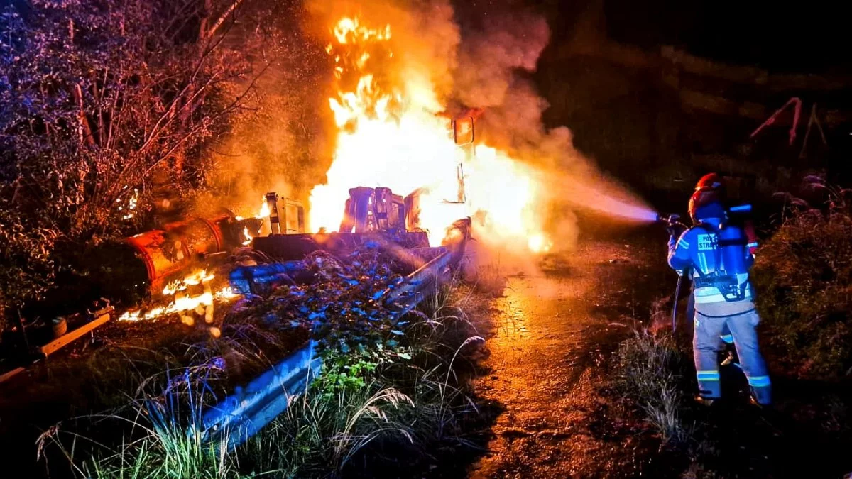 W komunikacie opisano kolejne etapy interwencji: ratownicy zabezpieczyli miejsce zdarzenia, przystąpili do gaszenia pożaru przy użyciu piany gaśniczej oraz sprawdzili maszynę pod kątem dalszych zagrożeń. Dzięki przeprowadzonym działaniom ogień nie rozprzestrzenił się na pozostałe elementy maszyny ani na otoczenie.