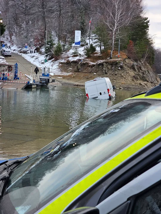 Po godzinie 7:00 służby ratunkowe otrzymały zgłoszenie o zdarzeniu między Polańczykiem a Wyspą Energetyka. Jak przekazała portalowi wBieszczady.pl aspirant sztabowy Katarzyna Fechner, oficer prasowy Komendy Powiatowej Policji w Lesku, kierowca samochodu dostawczego podczas przejazdu utknął, co doprowadziło do przechylenia się pojazdu. Policjanci i strażacy, którzy pracowali na miejscu, ustalili, że przyczyną zdarzenia było podmycie jednej z płyt przez wodę. To spowodowało niestabilność nawierzchni i utratę równowagi przez samochód.