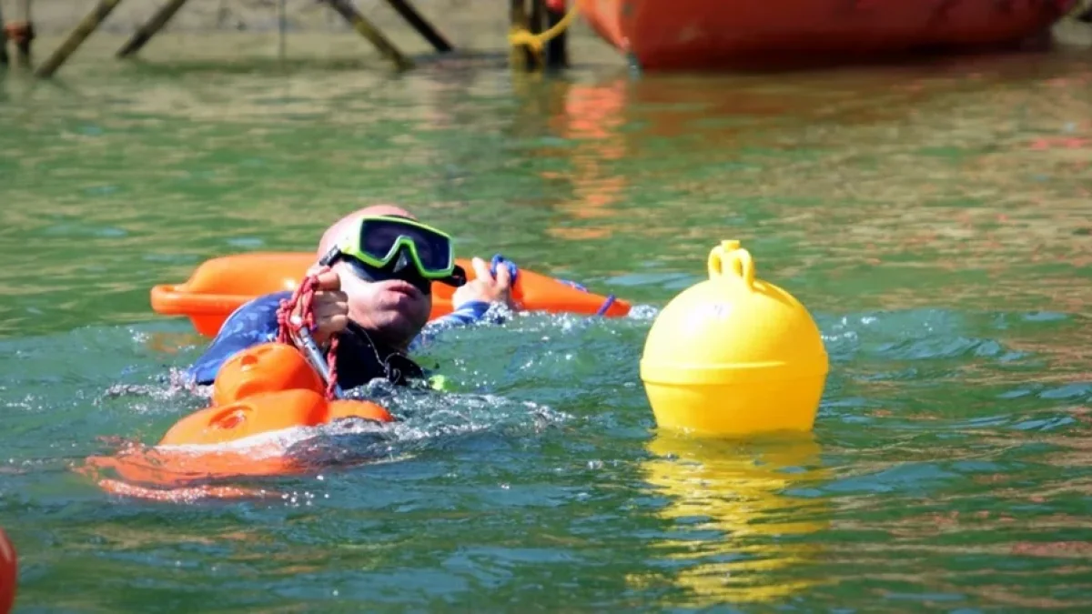 Po wykonaniu tego zadania płynie łodzią ratownicza do boi, pod którą był zatopiony manekin opływając ją z dowolnej strony i wraca na linię mety wyznaczoną w okolicach pomostu startowego.