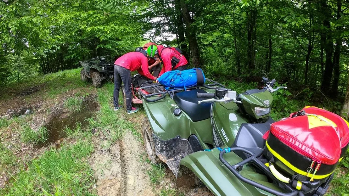 Podczas szkolenia uczestnicy korzystali ze sprzętu zakupionego w ramach projektu: samochód operacyjny, quady, górskie rowery elektryczne, drony, odbiorniki gps, radiotelefony