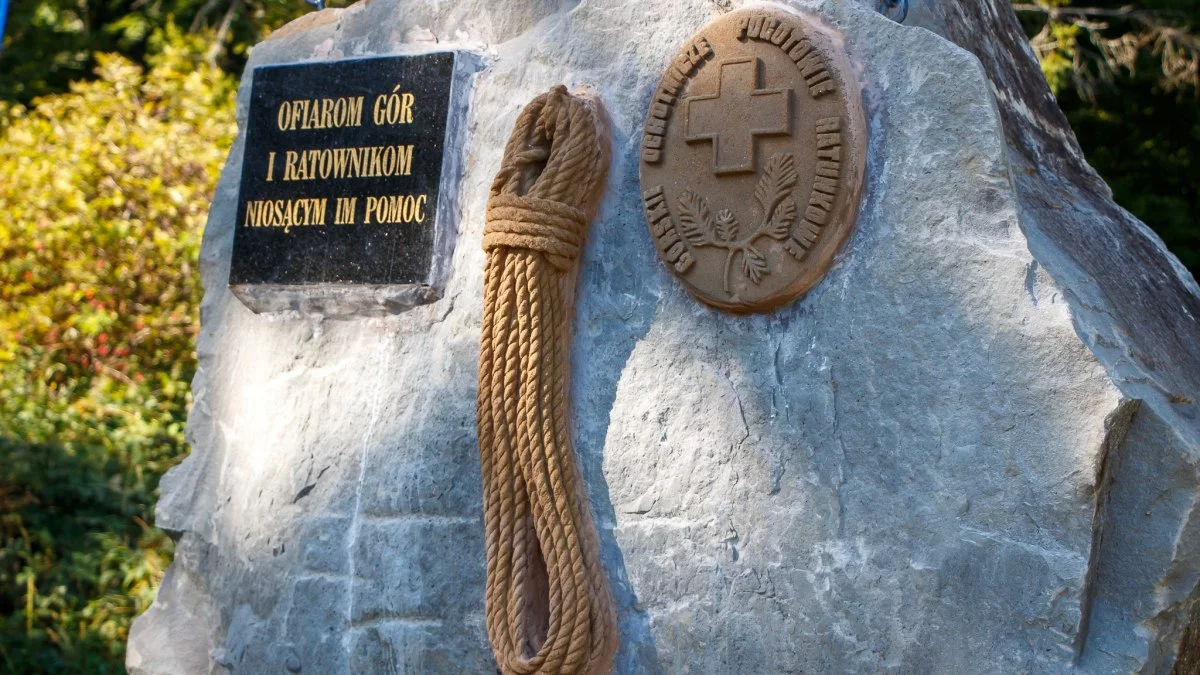 Monument „Ofiarom gór i ratownikom niosącym im pomoc” został zaprojektowany i wykonany przez Romana Dawidziaka – ratownika Grupy Bieszczadzkiej Górskiego Ochotniczego Pogotowia Ratunkowego i jednocześnie konserwatora zabytków z Rzeszowa. Pomnik odsłonięto 26 sierpnia 2011 roku. Jego forma nie jest przypadkowa. To bryła piaskowca, której pęknięcie u podstawy symbolizuje przewagę sił natury nad słabością człowieka. Na szczycie znajduje się krzyż – znak zwycięstwa życia nad śmiercią, często owiany śniegiem i lodem, co dodatkowo nadaje mu charakter górskiego symbolu. W obelisk wkomponowano także emblemat GOPR i linę ratowniczą, będące wyraźnym nawiązaniem do codziennej służby ratowników.