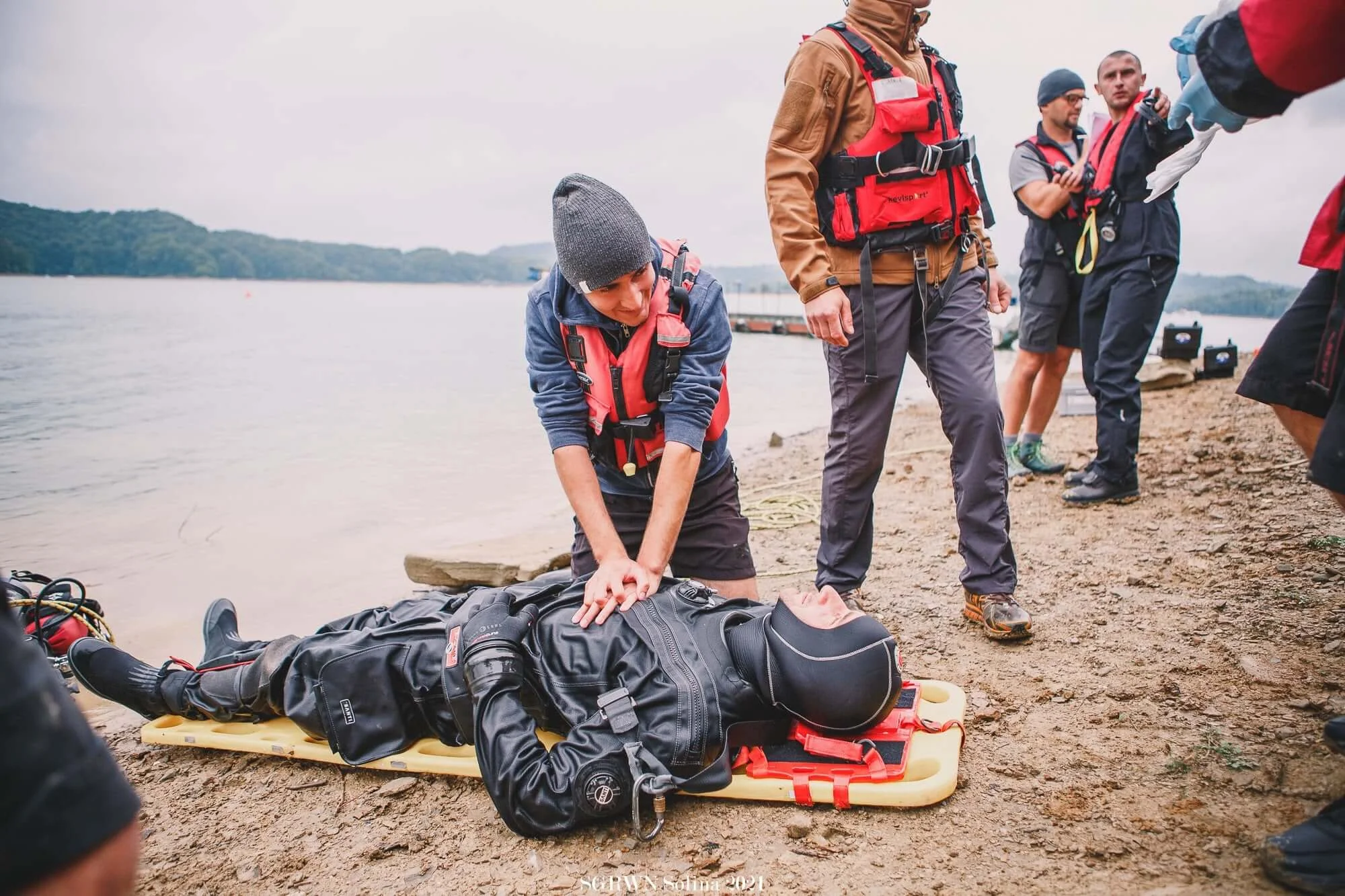 Zajęcia praktyczne odbywają się na poligonie szkoleń wodnych w Polańczyku nad Jeziorem Solińskim. Bierze w nich udział 66 podkarpackich funkcjonariuszy, którzy doskonalą swoje umiejętności w zakresie ratowania wodnego i podwodnego, ratowania zatopionych jednostek pływających oraz współpracy z Lotniczym Pogotowiem Ratunkowym w zakresie transportu grup nurkowych.