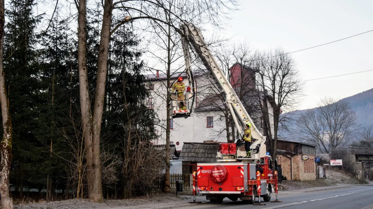 Na jednym z drzew przy ulicy Fabrycznej w Ustrzykach Dolnych zauważono kota, który nie potrafił samodzielnie zejść w dół. Ze względu na wysokość, na jakiej przebywał, potrzebna była profesjonalna pomoc. We wskazane miejsce przybyli strażacy z państwowej jednostki, którzy przy pomocy wozu bojowego z podnośnikiem skutecznie uwolnili kota, zwracając uwagę na bezpieczeństwo zarówno zwierzęcia, jak i swoje własne. „Misja” zakończyła się sukcesem.