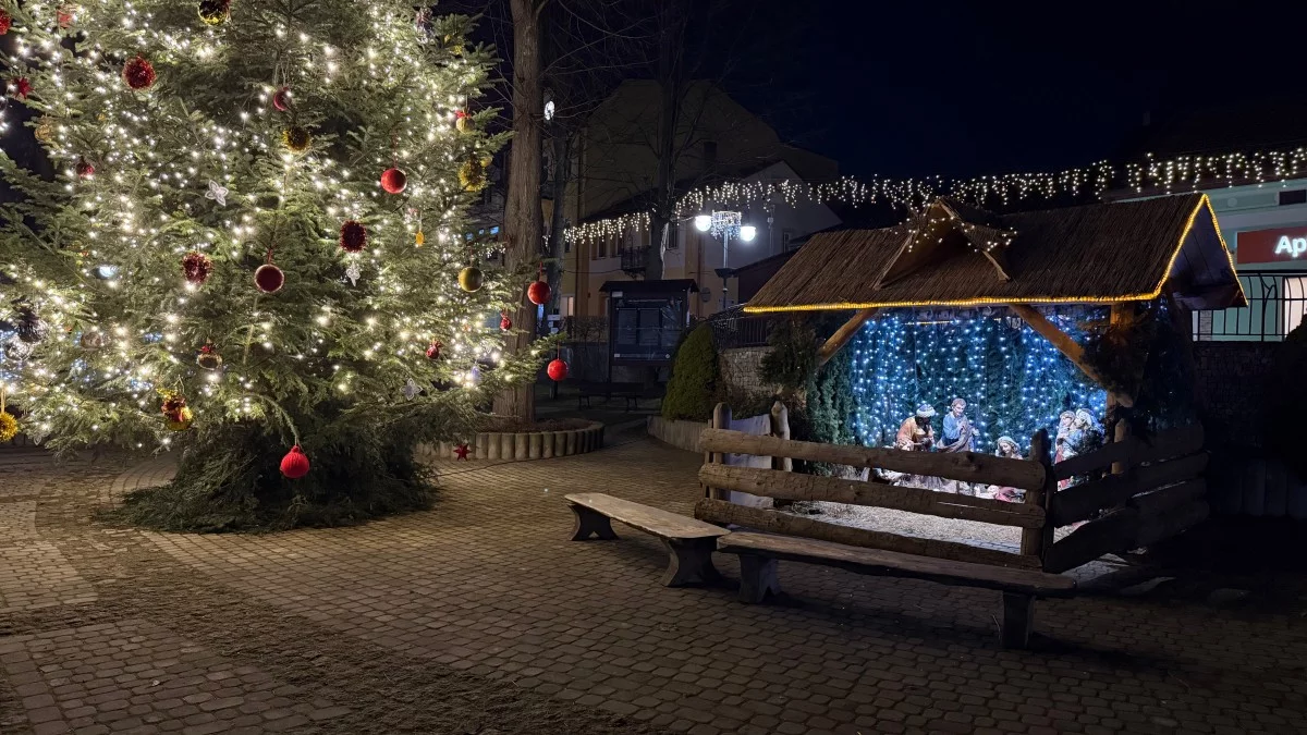 W przestrzeni Rynku pojawiła się specjalna ramka do zdjęć z napisem „Wesołych Świąt Ustrzyki Dolne”. Jest to element, który szybko stał się naturalnym miejscem pamiątkowych fotografii. Uwagę przyciąga również wielkoformatowy napis „Ustrzyki Dolne”. Szczególnie efektownie prezentuje się po zmroku, kiedy iluminacja nadaje mu wyraźny i ciepły akcent świetlny. Na Rynku nie zabrakło także bożonarodzeniowej choinki. Drzewko zostało ubrane kilka dni temu przez dzieci ze szkół oraz żłobka, co nadało temu elementowi szczególnego, wspólnotowego wymiaru. Obok choinki ustawiono szopkę bożonarodzeniową, z której rozbrzmiewają kolędy, dopełniając całości tradycyjnej, świątecznej oprawy.