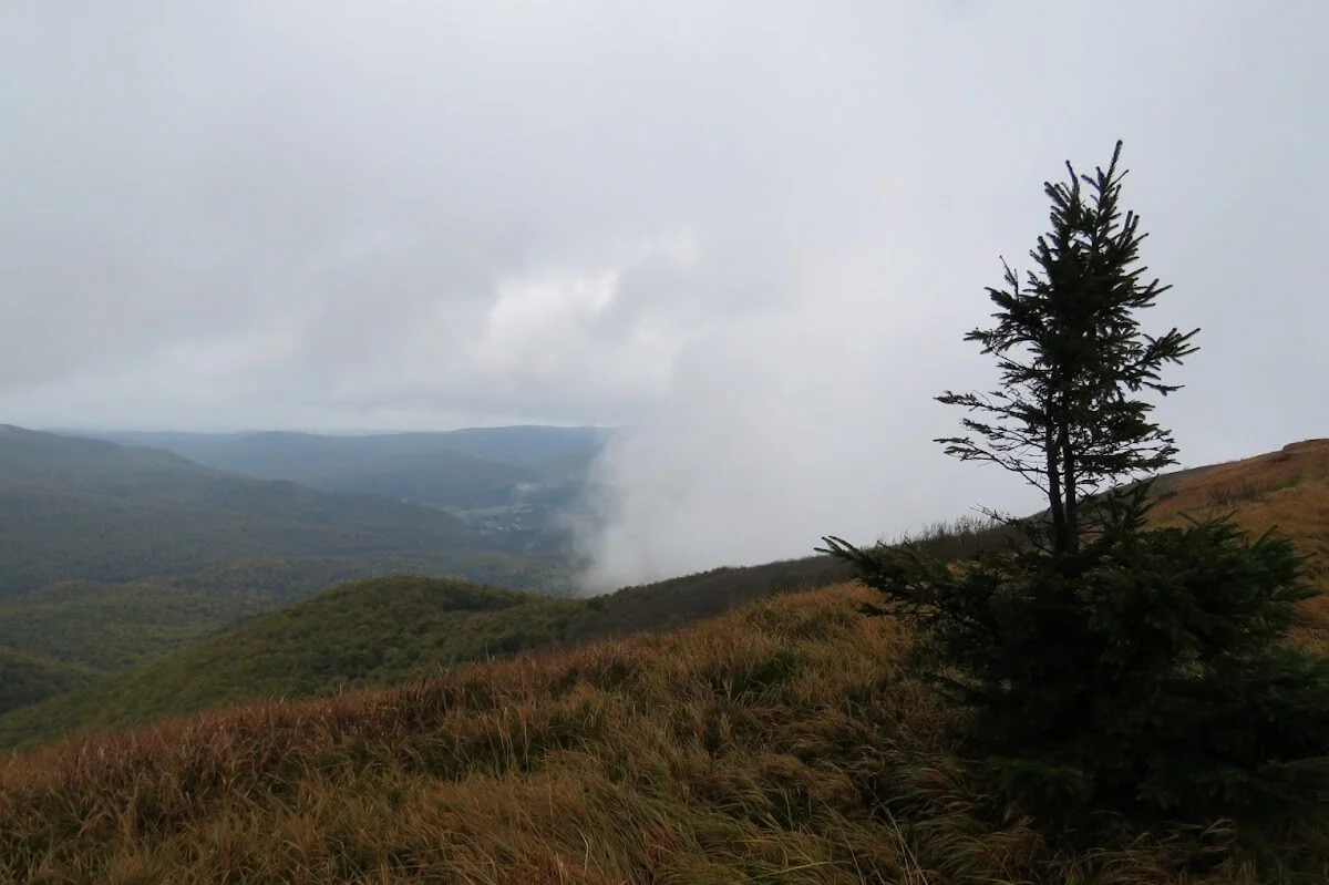 Dzisiejszego ranka termometry w Cisnej i Ustrzykach Górnych pokazywały od 5 do 7 stopni Celsjusza. Osoby, które wybrały się na górską wędrówkę w godzinach porannych, musiały liczyć się z mgłą ograniczającą widoczność. W ciągu dnia pogoda nieco się poprawiła. Na niebie można było ujrzeć słońce, co sprzyjało wyprawom po Bieszczadach.