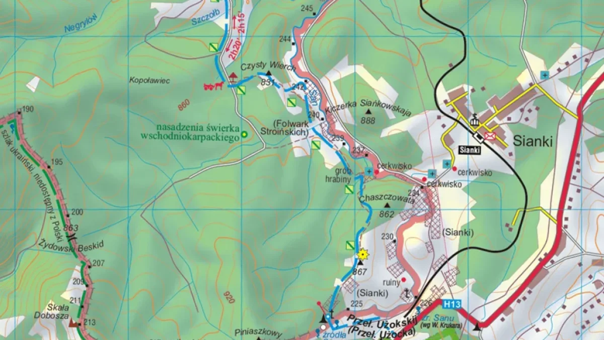 Jako, że wejście na szlak mieści się na Ukrainie pierwszą i najważniejszą sprawą jest posiadane paszportu. Granicę przekraczamy w Krościenku. Dalej przez Chyrów, Starą Sól, Stary Sambor i Turkę kierujemy się do Sianek na Przełęcz Użocką, rozdzielającą Bieszczady Wschodnie i Zachodnie. W miejscowości Werchowyna-Bystra odbywa się kolejna kontrola paszportowa, po której otrzymuje się przepustkę na wejście w pas graniczny.