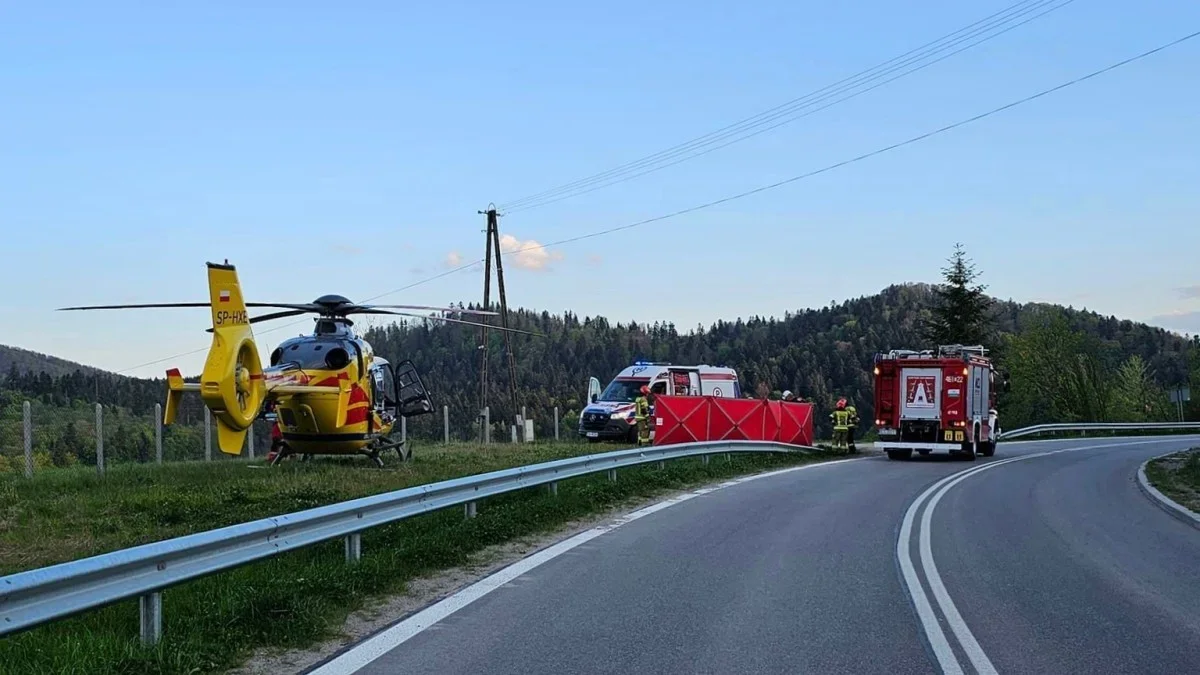 Jak ustalono, 40-letni mieszkaniec Krakowa jadący motocyklem stracił panowanie nad pojazdem i zjechał z drogi, gdzie uderzył w inny motocykl.