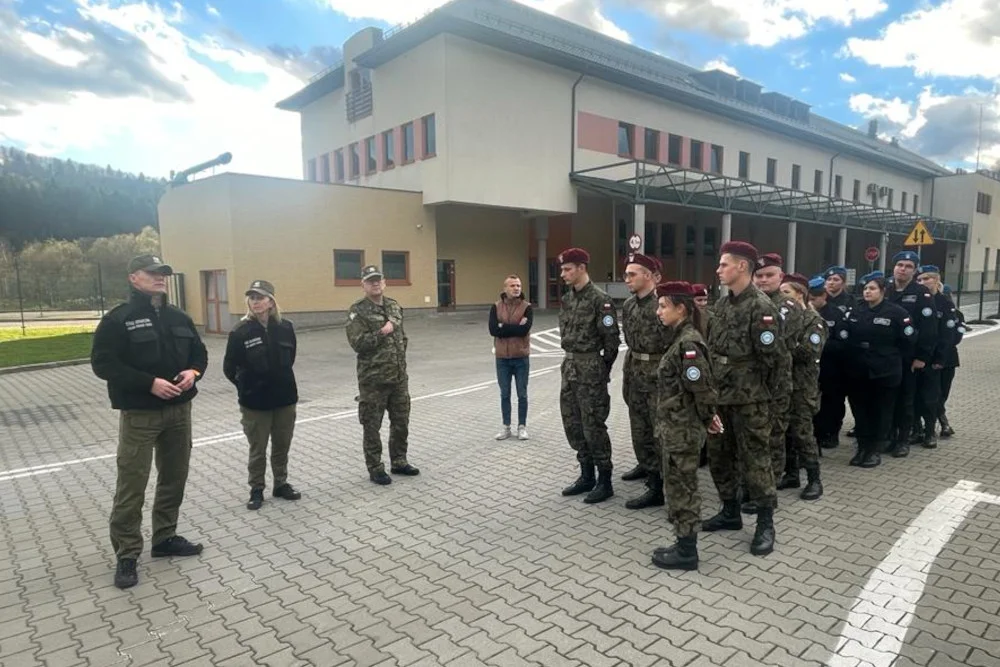 Uczniowie Liceum Ogólnokształcącego im. Sebastiana Petrycego w Pilznie wizytę studyjną w Bieszczadzkim Oddziale Straży Granicznej rozpoczęli od głównej komendy, gdzie poznali strukturę organizacyjną, zasady naboru do służby, a także odwiedzili salę tradycji, w której znajdują się pamiątkowe eksponaty dotyczące historii straży granicznej.