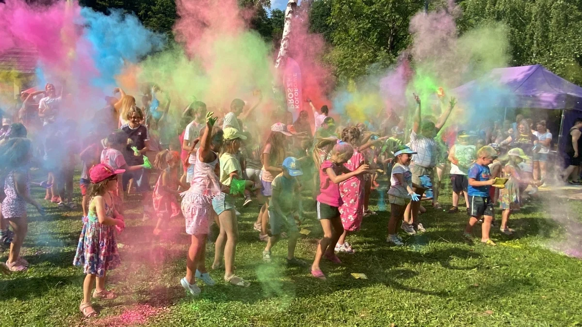 Festiwalowi ulicznego jedzenia w Parku pod Dębami w Ustrzykach Dolnych towarzyszyło również święto kolorów. W wydarzeniu wzięło udział wiele osób, głównie dzieci i młodzież, jednak były też osoby starsze. Kluczowymi punktami zabawy w rytm dochodzącej z głośników muzyki były odbywające się wyrzuty specjalnych, koloryzujących proszków, które trzymali w dłoniach uczestnicy. Efekt? Pomalowane na różne kolory twarze, włosy, ubrania. Nikt się jednak specjalnie nie przejmował tym, czy to się uda domyć i wyprać, a liczyła się przede wszystkim dobra zabawa. Nie dało się nie zauważyć, że wszyscy uczestnicy są z niej zadowoleni.