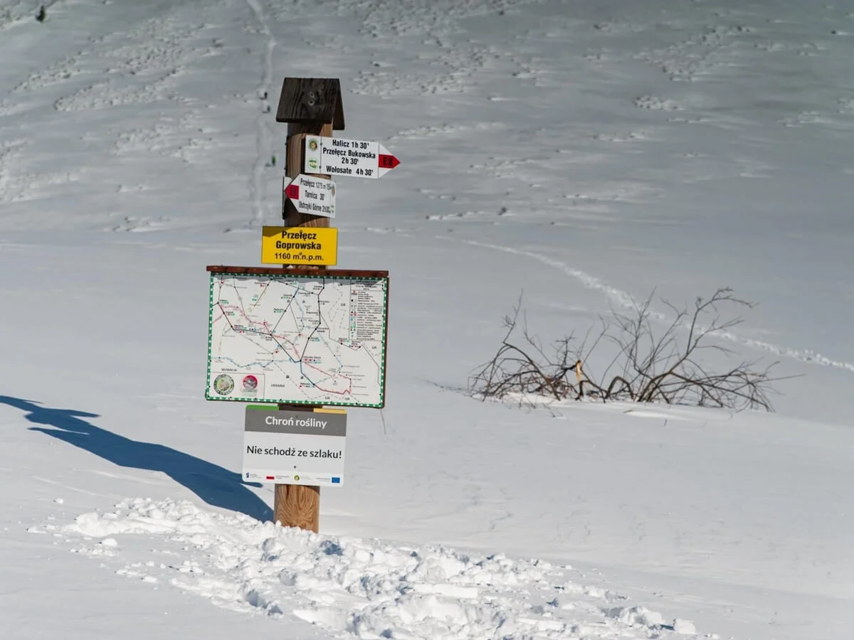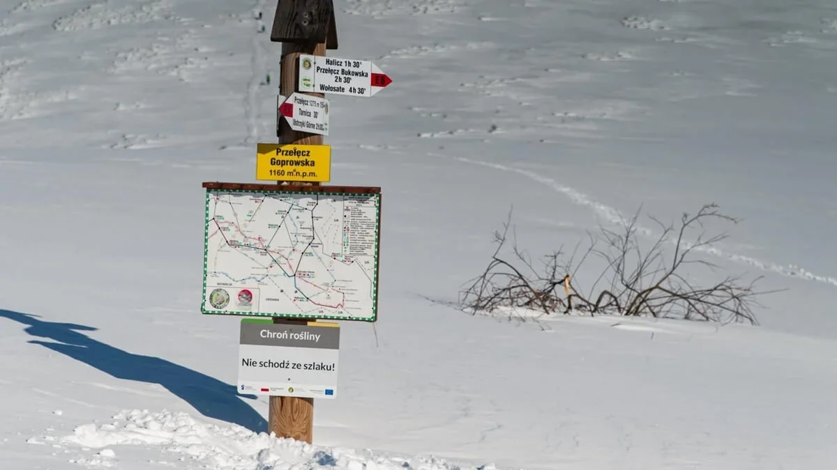 Z myślą o bezpieczeństwie, w okresie zimowym, w strefach połoninowych zamontowano specjalny system oznakowania. Powyżej górnej granicy lasu umieszczono czerwone tyczki z tabliczkami. Wskazują one przebieg szlaku oraz posiadają przypisany numer o znanej lokalizacji GPS. Koordynaty poszczególnych tyczek udostępniono Górskiemu Ochotniczemu Pogotowiu Ratunkowemu. „W przypadku utraty orientacji w terenie, np. z powodu gęstej mgły, należy zadzwonić pod nr ratunkowy GOPR 601 100 300 podając nr tabliczki, przy której się znajdujecie. Dlatego prosimy, aby nie dokonywać żadnych zmian w wykonanym oznakowaniu, gdyż od jego trwałości zależeć może ludzkie życie!” – informuje Park.