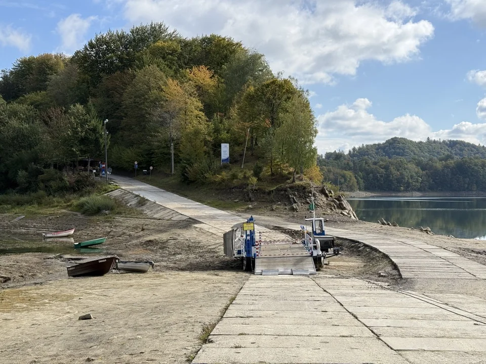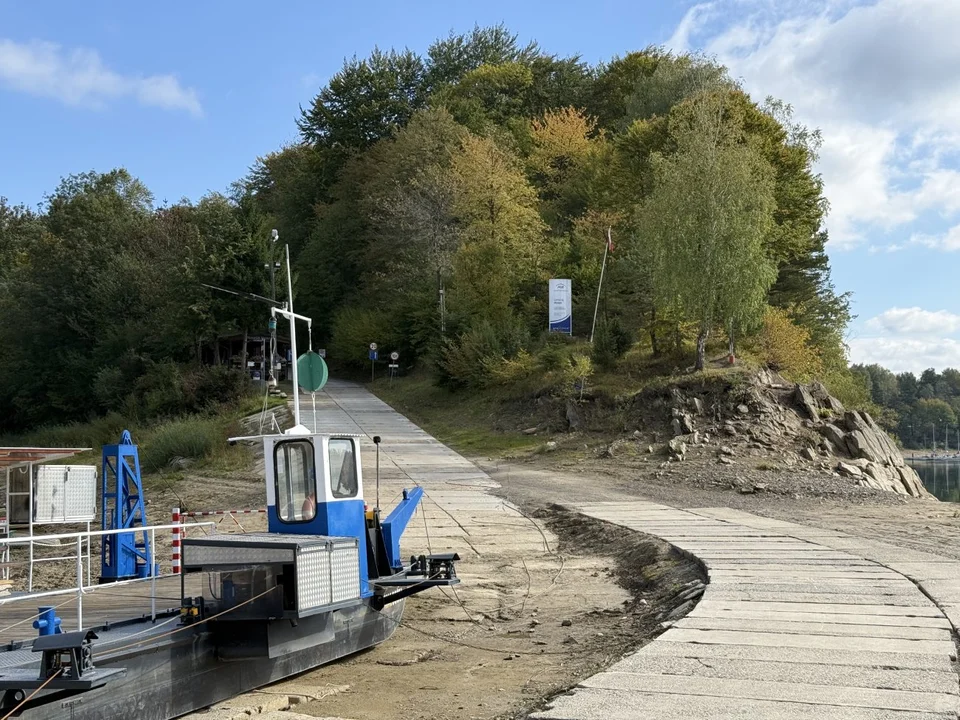 Obecnie właśnie taka sytuacja ma miejsce – poziom jeziora jest obniżony, dzięki czemu kierowcy i piesi mogą swobodnie dostać się na wyspę bez konieczności korzystania z przeprawy promowej. Przejazd odbywa się bez utrudnień i jest w pełni bezpieczny.