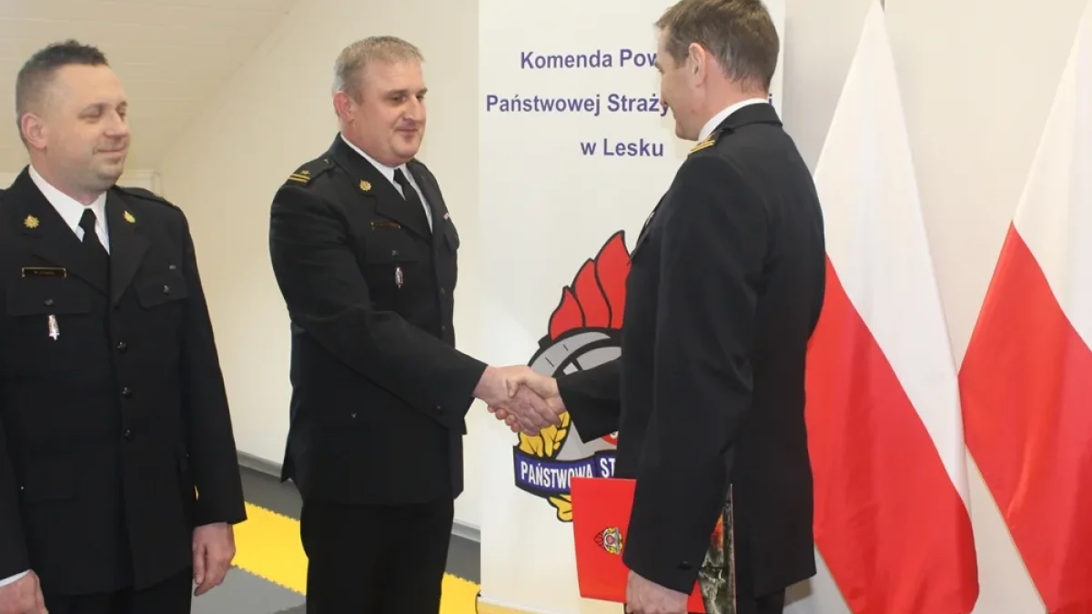 W komendzie Powiatowej Państwowej Straży Pożarnej w Lesku doszło do uroczystości mianowania dwóch strażaków na wyższe stanowiska. Dotychczasowy zastępca dowódcy, mł. bryg. Maciej Wojtanowski, otrzymał z rąk komendanta st. bryg. Jacka Dydka awans na funkcje dowódcy Jednostki Ratowniczo-Gaśniczej w Lesku.