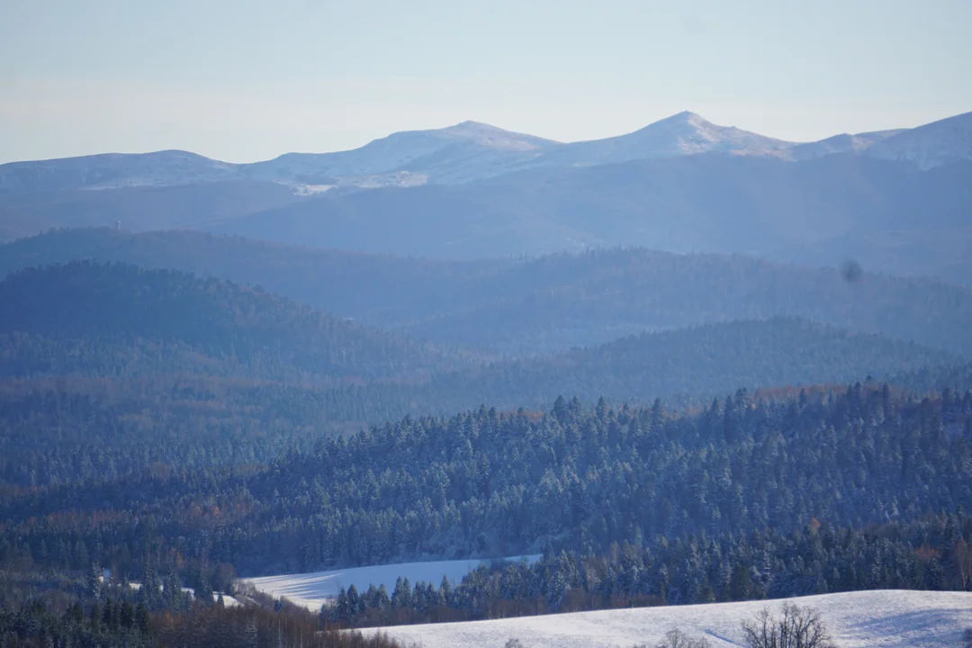 Miniona środa, 19 listopada 2025 roku, okazała się wyjątkowo sprzyjająca dla odwiedzających. Pogoda była słoneczna, a świeży, lekki śnieg po ostatnich opadach stworzył charakterystyczny, przejściowy klimat późnej jesieni z pierwszymi oznakami zimy. W takich warunkach panorama Bieszczadów prezentowała się szczególnie okazale.