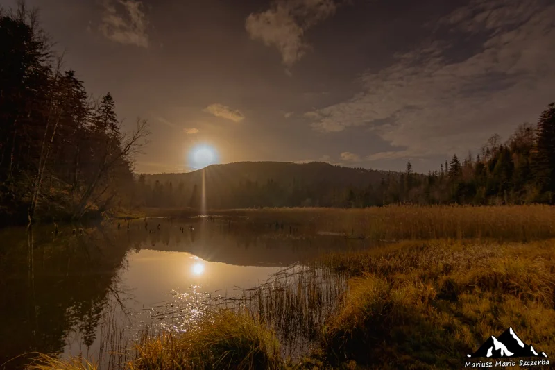 Bardzo charakterystyczny wygląd ponad taflą jeziora zawdzięczamy pracy bobrów. Wystające z wody kikuty drzew, nagryzione przybrzeżne drzewa, liczne dziury i gałęzie tworzą malowniczy i urokliwy krajobraz. Chociaż przy zmroku trochę "księżycowy"