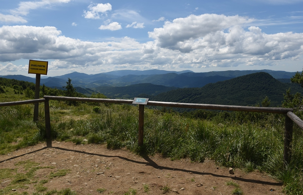 Po ponad dwu godzinnym marszu docieramy na Przełęcz Bukowską (1127 m n.p.m.). Tam znajduje się punkt widokowy z którego rozciąga się widok na Ukrainę i ukraińską część Bieszczadów.