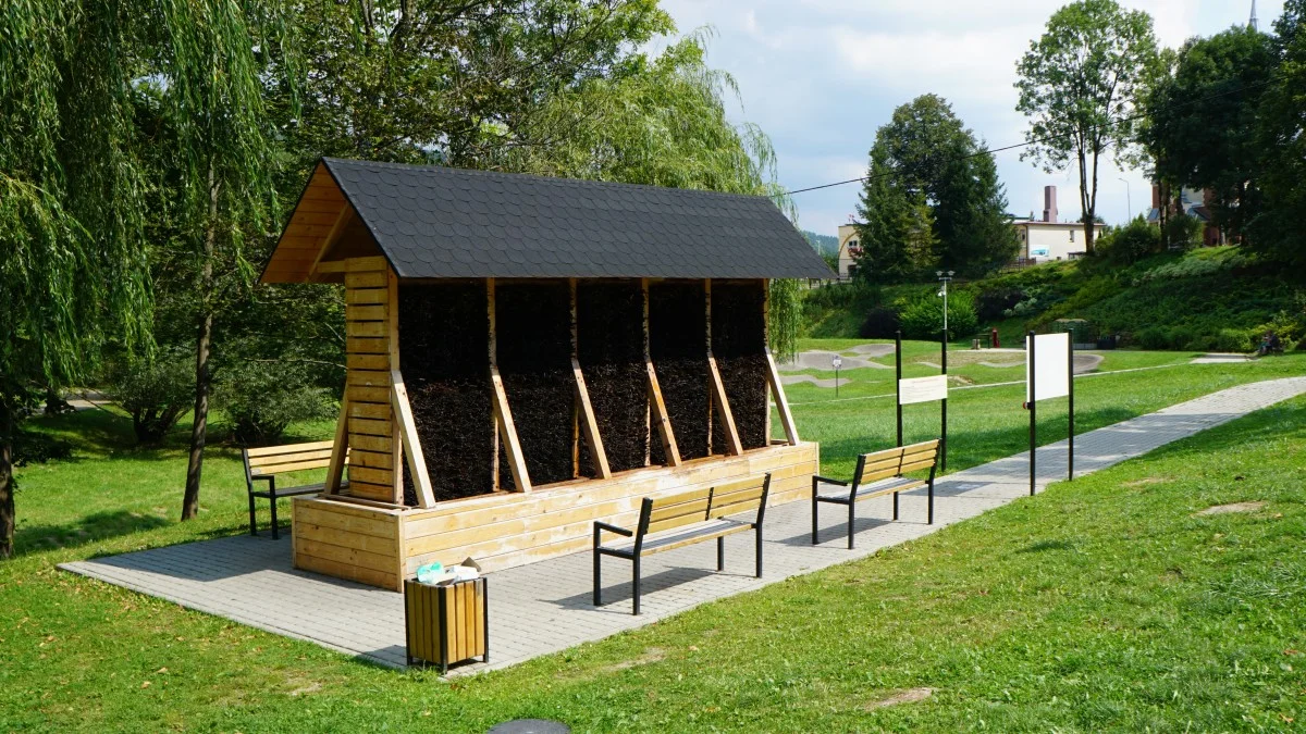 Tężnia została zaprojektowana z myślą o maksymalnym komforcie użytkowników. Choć konstrukcja jest niewielka, tworzy ona w pełni funkcjonalną przestrzeń do terapii solankowej. Bryła tężni ma 3,5 metra wysokości, 1,5 metra szerokości i 6 metrów długości, a jej drewniany szkielet wypełniony jest tarniną śliwy, po której w obiegu zamkniętym spływa solanka. Wzdłuż całej długości tężni, w górnej części konstrukcji, znajduje się centralnie zamontowane koryto główne, które rozprowadza solankę na tarninę. Wokół tężni ustawiono cztery ławki, na których można usiąść, zrelaksować się i czerpać korzyści z terapii. Tężnia będzie funkcjonować do końca października w godzinach 08:00-18:00. W przypadku niekorzystnych warunków atmosferycznych urządzenie jest wyłączany, co jest niezbędne dla utrzymania bezpieczeństwa użytkowników. Uruchomienie tężni jest proste – wystarczy nacisnąć czerwony przycisk, znajdujący się poniżej tablicy informacyjnej. Czas jednorazowego seansu to 50 minut, co pozwala na pełne wykorzystanie leczniczych właściwości solanki.