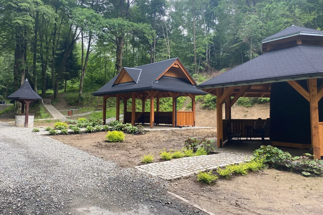 Do punktu doprowadzano wodę siarczykową z 14 źródeł, 6 z nich ujęto w postaci ocembrowanych studni, a w 1936 roku powstała pierwsza infrastruktura zdrojowa. Zaczęto tam urządzać również pijalnię wód, kabiny do natrysków, a nawet pawilon muzyczny. Źródłom nadano imiona osób, które zasłużyły się dla Leska: „Jadwiga”, „Józef”, „Mieczysław”, „Marcin” i „Mieczysław”.