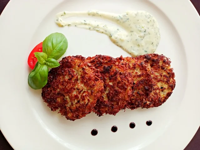 Na patelni rozgrzać olej i nakładać łyżką porcje ciasta. Placki smażyć po 3-4 minuty z każdej strony. Usmażone placki odsączyć z tłuszczu na papierowym ręczniku.