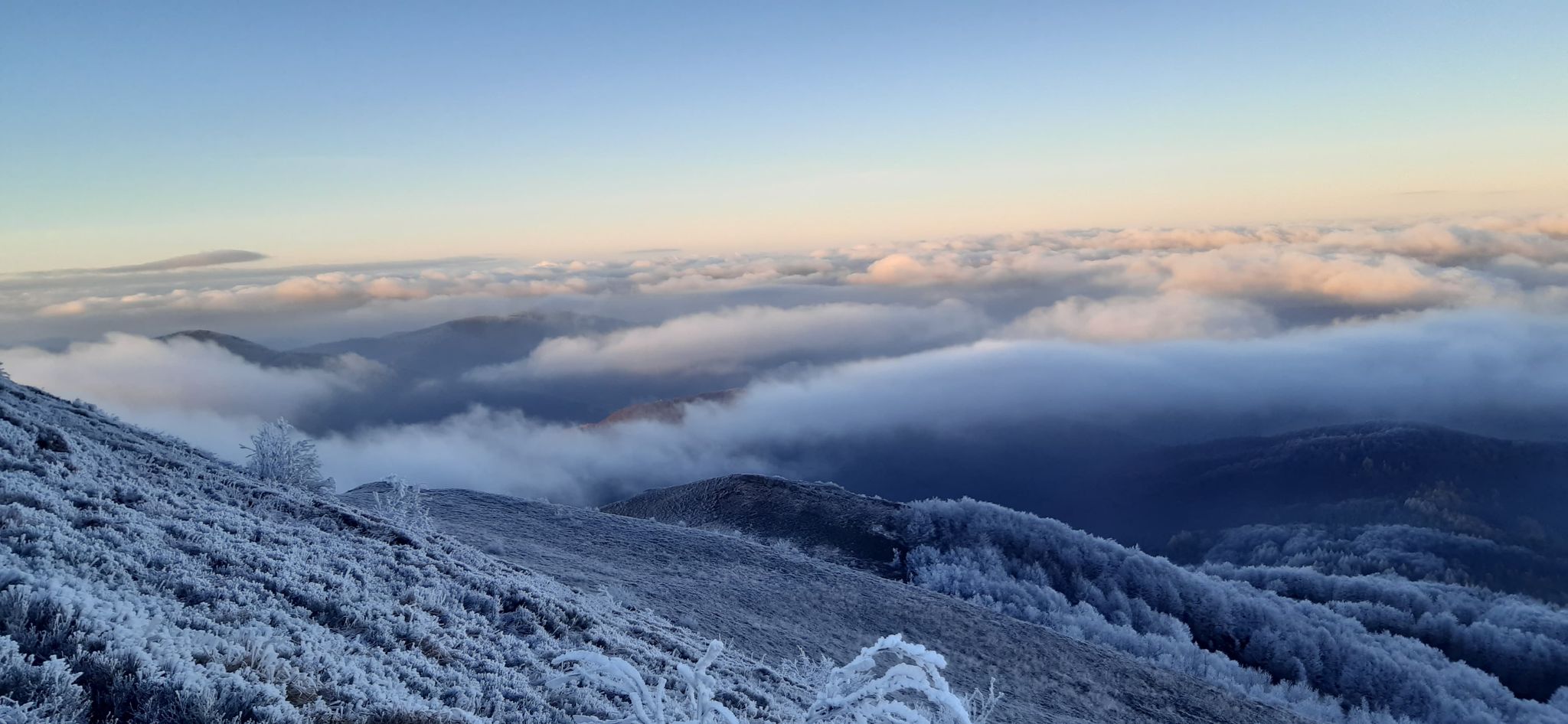 Ale są zapaleńcy, którzy o każdej porze roku wybierają połoniny. Jednym z bieszczadzkich klasyków jest Połonina Caryńska. O każdej porze roku wygląda ona inaczej. Teraz, na pograniczu jesieni i zimy jest naprawdę magiczna. Jeszcze nie leży śnieg, a jednak góry skrzą się od szronu i szadzi. A wszystko oświetla późnojesienne słońce.