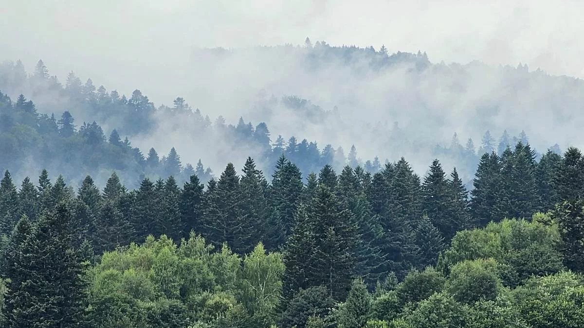 To zjawisko nazywa się transpiracją – drzewa „oddychają”, wypuszczając parę wodną. W efekcie całe zbocza pokrywają się smużkami wilgoci, a las wygląda tak, jakby pod jego powierzchnią ktoś naprawdę rozpalił wielkie kotły. Gdy do tego dojdą krople rosy na bukowych liściach i mleczna mgła w dolinach – krajobraz nabiera baśniowej, niemal nierealnej aury.