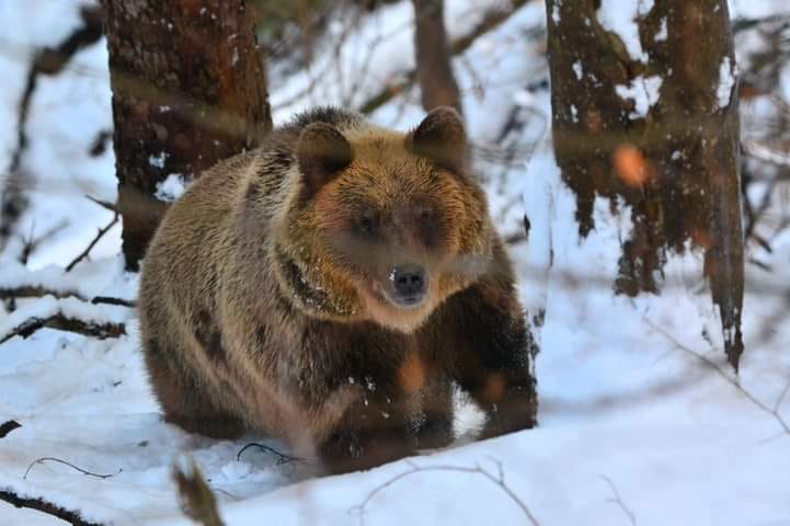 Mimo, że zima w Bieszczadach rozpanoszyła się na dobre, to wiele niedźwiedzi nadal nie śpi. A jeśli nie śpią to muszą jeść... Niedźwiedzie są wszystkożerne. Żywią się trawą, ziołami, nasionami, grzybami, dżdżownicami, ślimakami, jajami ptaków, miodem. Potrafią też upolować leśną zwierzynę i złowić ryby.