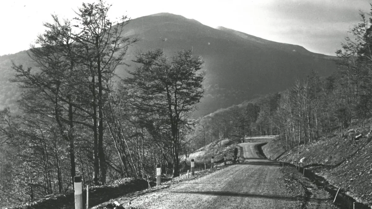 Droga, którą widzimy na starej fotografii nie jest całkiem nową drogą. Poprowadzono ją bowiem zgodnie z przebiegiem starej trasy wiodącej jeszcze w XVIII wieku do wioski Bystra, z odgałęzieniem na Przełęcz Bukowską. Miała ona też niemałe znaczenie w czasie pierwszej wojny światowej. W latach pięćdziesiątych poszerzono ją nieco i wykonano nową nawierzchnię.