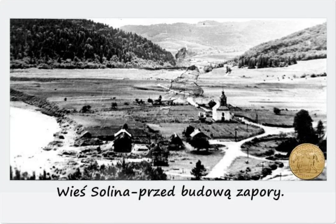 Na zdjęciu uwieczniono nieistniejący już, rozebrany przed zalaniem tego terenu, murowany kościół z I poł. XIX w. W Solinie jak wiadomo istniała wtedy cerkiew i do tego drewniana, stojąca na niewielkim wzniesieniu. Zatem nic się nie zgadza z opisem pod fotografią. O tym, że nie jest to Solina upewnia nas również to co widzimy w głębi.