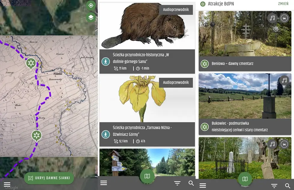 Aplikacja dostępna jest w polskiej, słowackiej i angielskiej wersji językowej. Pozwoli ona odkrywać przepiękne, dzikie tereny doliny górnego Sanu, wzdłuż polsko-ukraińskiej granicy. Zachwyci nie tylko miłośników przyrody, ale także wszystkich, którzy chcą poznać historię tych miejsc.